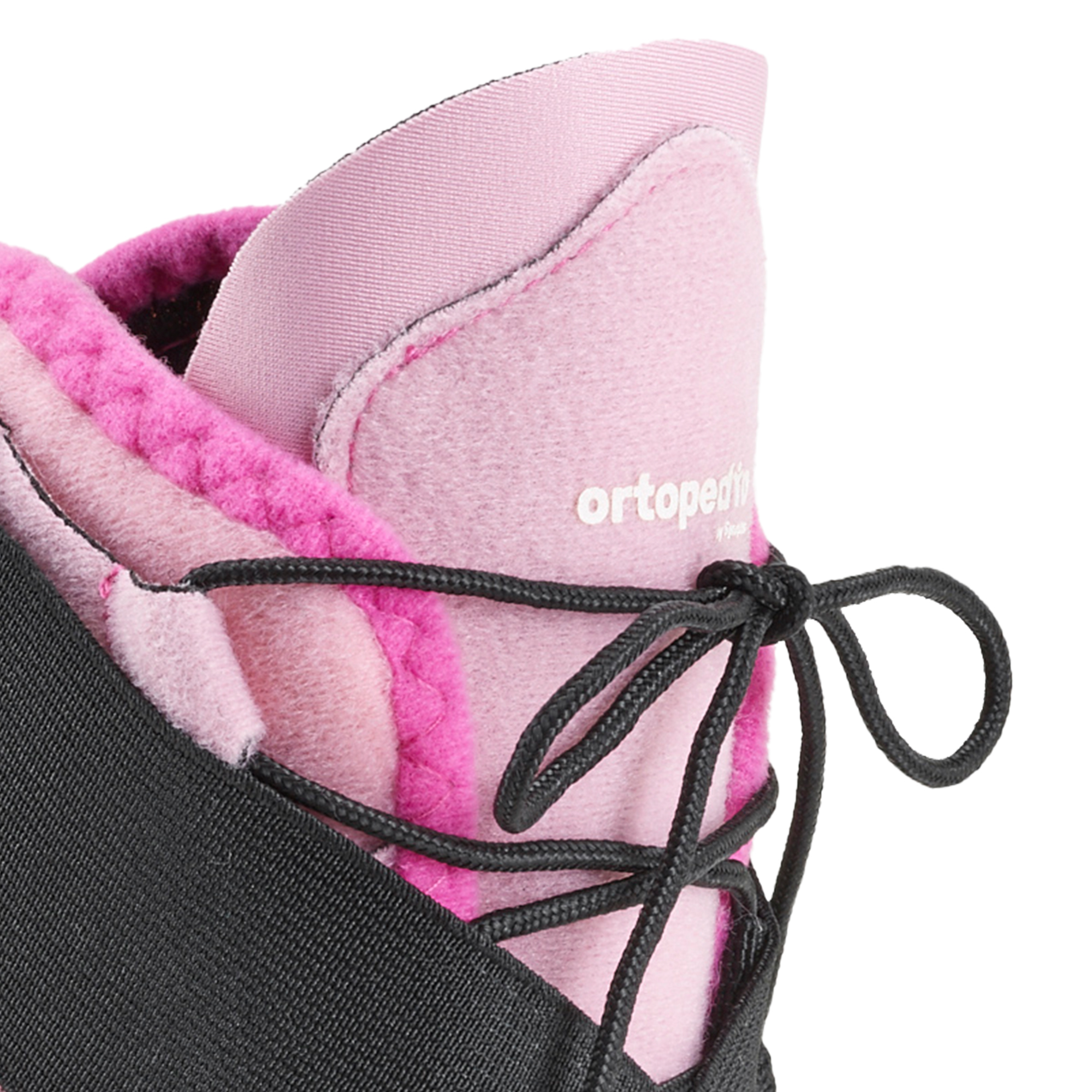 - Naciągnąć zewnętrzny pasek z grzbietu stopy i przełożyć go pod wewnętrzną stroną stopy. Na koniec naciągnąć go do góryi przymocować do odpowiedniego rzepu po zewnętrznej stronie kostki.